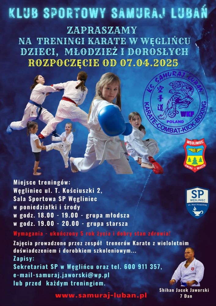 Z dniem 07.04.2025 roku otworzyliśmy nową Sekcję Karate Węgliniec, w ramach Centrum Szkoleniowego Sztuk Walk, Strzelectwa i Ochrony Samuraj. Wszystkich chętnych serdecznie zapraszamy...