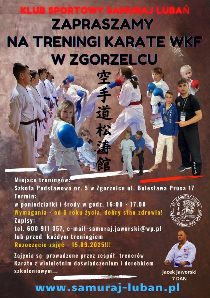 Z dniem 14.09.2025 roku otworzyliśmy nową Sekcję Karate Zgorzelec, w ramach Centrum Szkoleniowego Sztuk Walk, Strzelectwa i Ochrony Samuraj. Wszystkich chętnych serdecznie zapraszamy...
